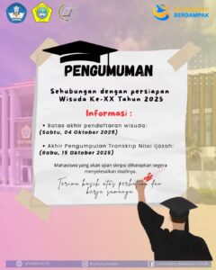 Sehubungan dengan pelaksanaan Wisuda Ke-XX Tahun 2025 dan proses persiapan yang sedang berjalan, bersama ini kami sampaikan bahwa: 1. Batas